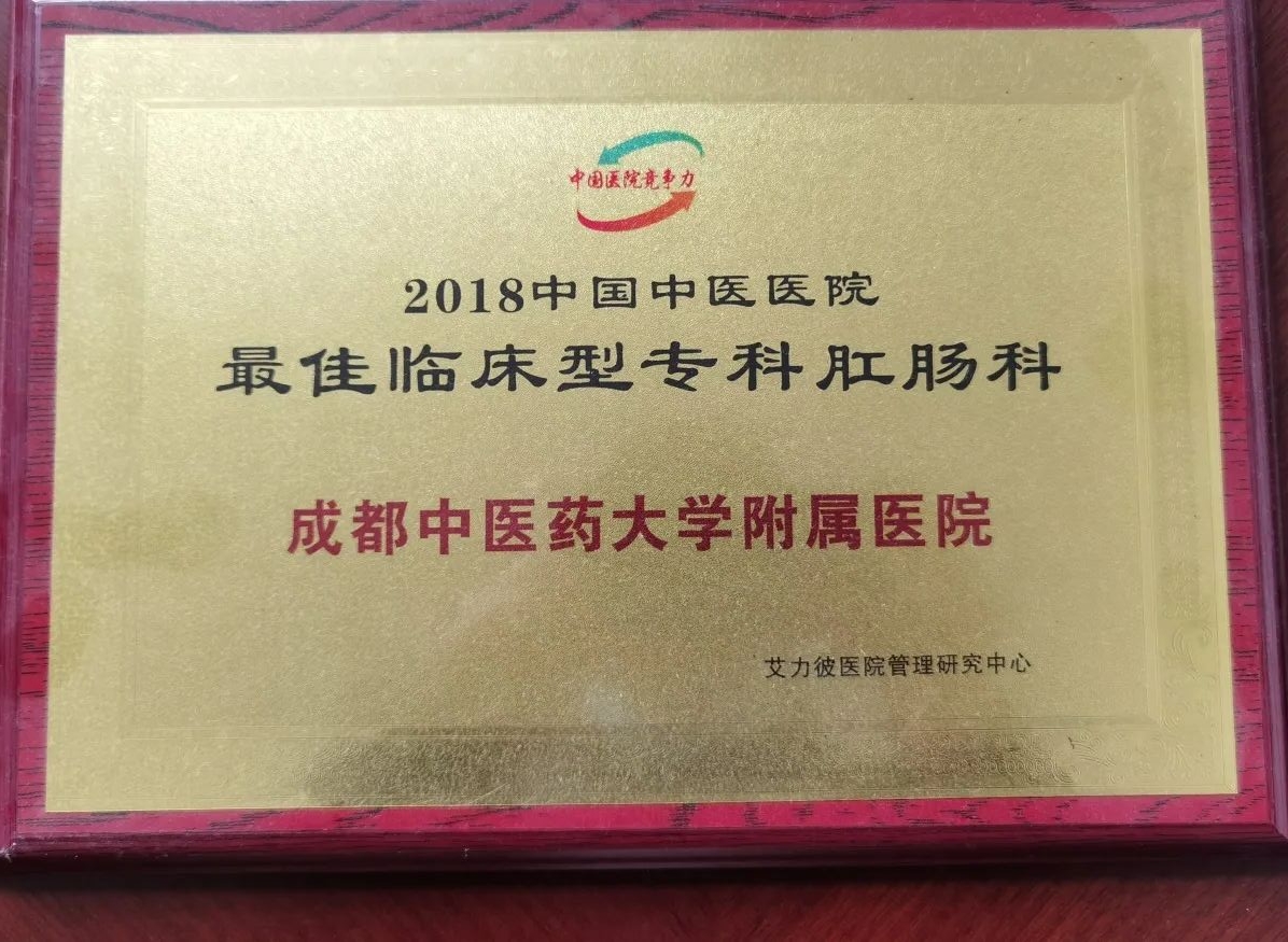 成(cheng)都中(zhong)醫(yī)藥大(da)學(xué)附屬醫(yī)院肛腸科(ke)由我(wo)國(guo)著名(míng)肛腸病學(xué)傢(jia)曹吉勳創建(jian)于(yu)1957年(nian),始終以(yi)病人(ren)爲(wei)中(zhong)心,全心全意爲(wei)人(ren)民(mín)服務(wu)爲(wei)宗旨,不斷(duan)髮(fa)展(zhan)壯大(da),先(xian)後(hou)被評爲(wei)國(guo)傢(jia)中(zhong)藥筦(guan)理(li)跼(ju)“十二五”重(zhong)點專(zhuan)科(ke)及(ji)重(zhong)點學(xué)科(ke)建(jian)設(shè)單(dan)位、國(guo)傢(jia)區(qu)域(yu)肛腸疾病診療中(zhong)心、全國(guo)肛腸臨牀(chuang)藥理(li)基地(GCP)、省重(zhong)點專(zhuan)科(ke)及(ji)重(zhong)點學(xué)科(ke)、西南(nan)西北肛腸疾病防治中(zhong)心、四川省中(zhong)醫(yī)肛腸疾病醫(yī)療質(zhi)量控製(zhi)中(zhong)心。2018年(nian)獲得成(cheng)都中(zhong)醫(yī)藥大(da)學(xué)附屬醫(yī)院“突出貢獻獎”、“區(qu)域(yu)影響力(li)”榮譽稱...