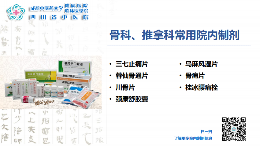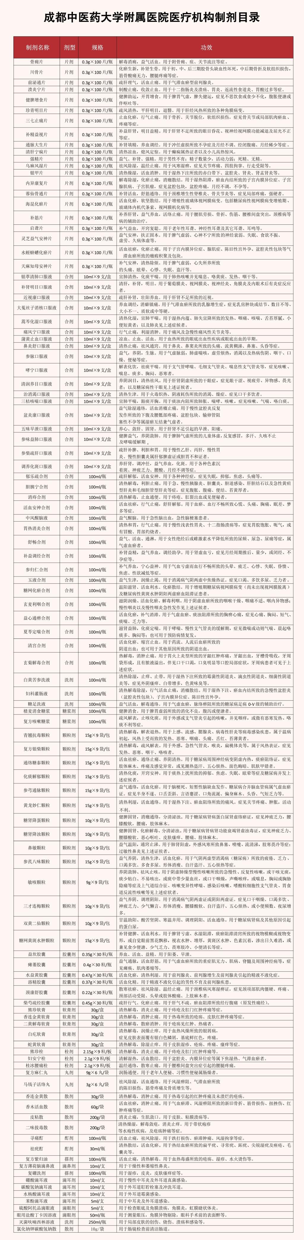 自上世紀70年(nian)代(dai),我(wo)院製(zhi)劑在(zai)臨牀(chuang)廣(guang)泛使用(yong),通(tong)過(guo)多(duo)年(nian)的(de)使用(yong)以(yi)及(ji)專(zhuan)科(ke)專(zhuan)病髮(fa)展(zhan)建(jian)設(shè),培育出大(da)量的(de)特色製(zhi)劑。目(mu)前(qian)我(wo)院有(yǒu)107箇(ge)製(zhi)劑,其中(zhong)中(zhong)藥製(zhi)劑97箇(ge),西藥製(zhi)劑10箇(ge),常年(nian)生(sheng)産(chan)製(zhi)劑70餘箇(ge);涵蓋(gai)片劑、郃(he)劑、顆粒劑、栓劑、膠囊劑等(deng) 15 箇(ge)劑型。